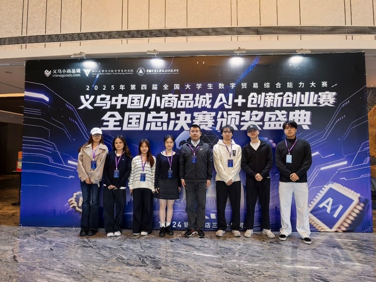 2025年9月27日至28日、10月23日至24日,第四届全国大学生数字贸易综合技能大赛迎来了全国总决赛。本次大赛共设4个竞赛模块,分别是1688大学生AI创业赛、义乌小商品城AI +创新创业赛、尼奥尼跨境直播赛和丝路电商来华留学生案例赛,分别在浙江大学紫金港校区、中国计量大学和义乌小商品城等地展开。该项赛事自创办以来,已经走过了四年的历程,赛事影响力持续扩大,已然成为极具影响力的全国性品牌赛事,累计吸引1213所高校、6万余名师生参与。自赛事启动以来,共吸引全国309所高校、2279支团队踊跃参与,最终276支优秀团队晋级全国总决赛。免费av影片 杨波教授、潘安教授,以及张亮、张群、舒中桥、黄晓琪等多位老师全程指导参赛团队。最终我院团队取得了优异成绩,斩获了二等奖1项和三等奖3项。杨波教授、舒中桥老师荣获优秀指导教师奖。