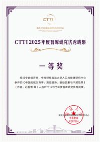2.CTTI 2025年度智库建设最佳案例、智库研究优秀成果一等奖。2025年11月,人口与健康研究中心入选CTTI2024年度智库建设优秀案例,中心研究成果《中国的低生育率:演变趋势、驱动因素与干预效果》和《生育补贴政策的激励效应与托底效应——来自生育补贴政策田野实验的证据》分别荣获CTTI 2025年度智库研究优秀成果一等奖。