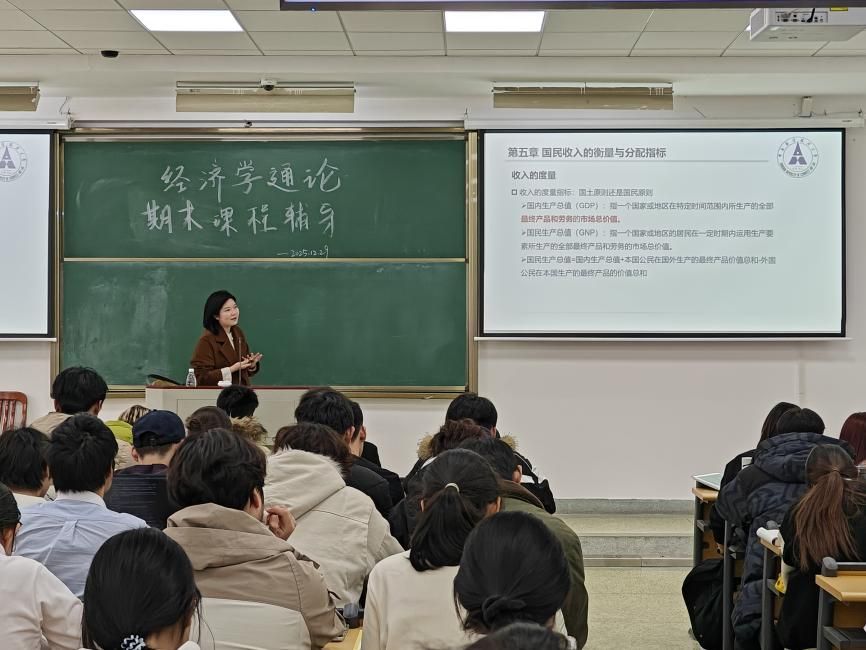 (学生通讯员 马茜)《经济学通论》课程组是免费av影片 重点打造的西方经济学卓越教学团队之一。本课程为全校通识课,授课学生对象为全校非经济学类专业学生。为帮助全校修读本课程的学生系统梳理经济学理论知识、精准破解复习难点,12月29日下午,由免费av影片 学习发展中心和免费av影片 联合主办的《经济学通论》课程重难点知识辅导活动在文泰楼319教室顺利举办。活动特邀课程组青年骨干教师徐晶博士主讲,200余名学子线下参与,现场学习氛围浓厚,收获广泛好评。