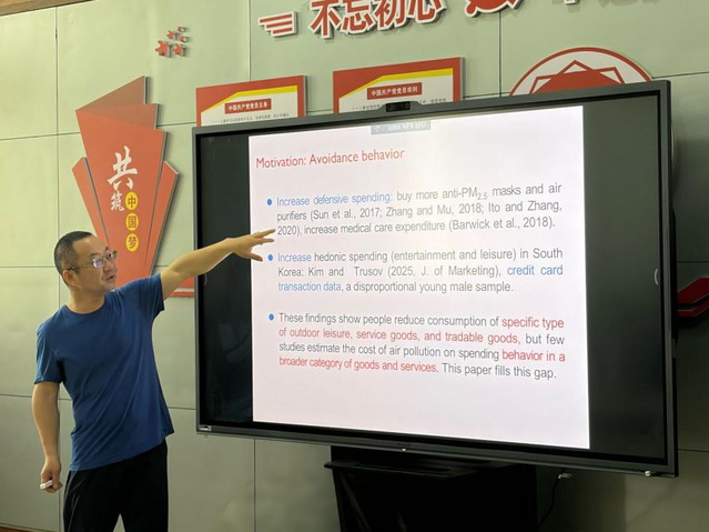 傅十和教授从空气污染与居民自我保护行为(avoidance behavior)切入,指出已有文献虽对特定消费品类有所涉及,但尚缺乏基于综合性数据的整体评估。研究以高频支付数据为基础,系统估计了空气污染对居民线下消费的因果效应。发现,污染程度上升使居民当日线下银行卡消费支出显著下降;消费影响在可延期商品、日常生活用品及生活服务类支出中尤为突出;内在机制发现,污染加重时居民的城市内购物出行距离显著缩短,与规避行为理论高度吻合。傅老师指出改善空气质量的相关政策在促进消费方面具有可观的协同经济效益,本研究为环境政策的经济价值评估提供了新的经验证据。