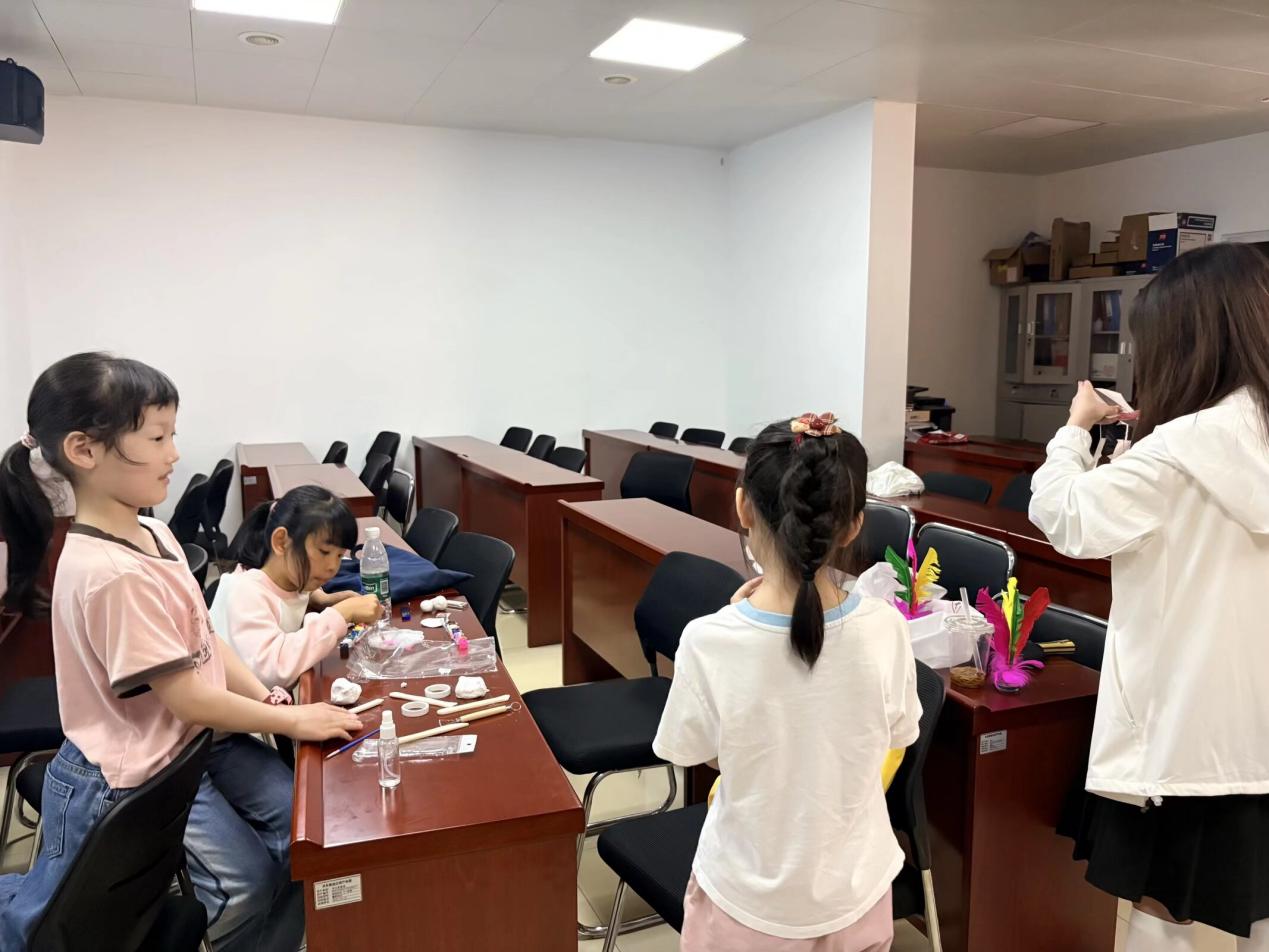 活动现场,“巧手DIY工坊”成了孩子们最向往的“梦工厂”。在志愿者的细心指导下,一张张彩纸在指尖翻飞,一团团黏土经过揉捏按压,最后化作一个个憨态可掬的小动物。志愿者们不仅是孩子们手工制作的陪伴者,更是耐心的倾听者,在互动中缓解了孩子们学习上的焦虑,创意与欢笑在社区活动中心交织回响。